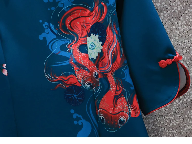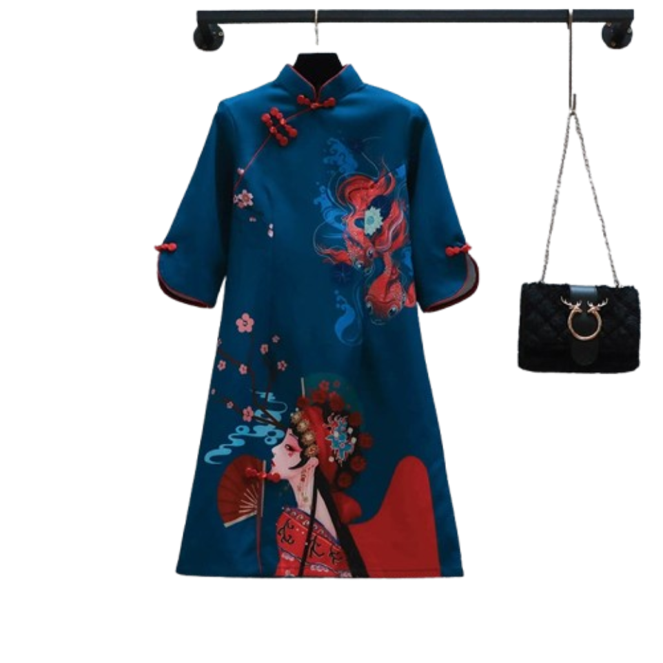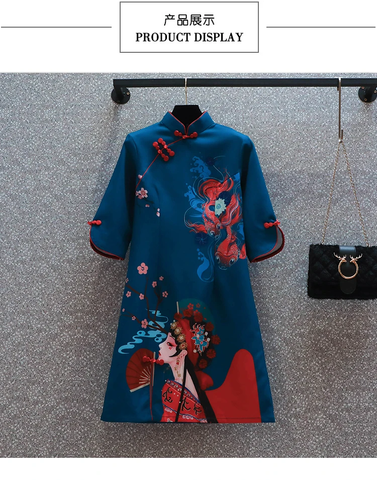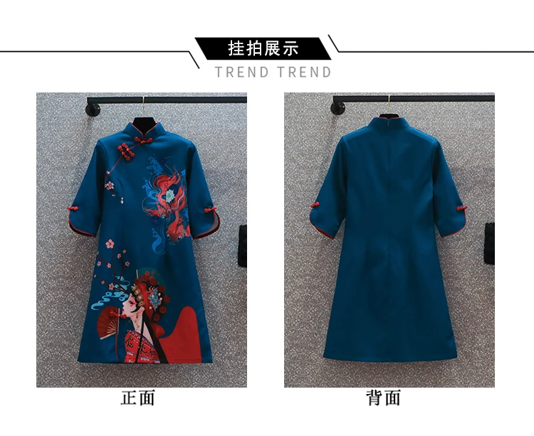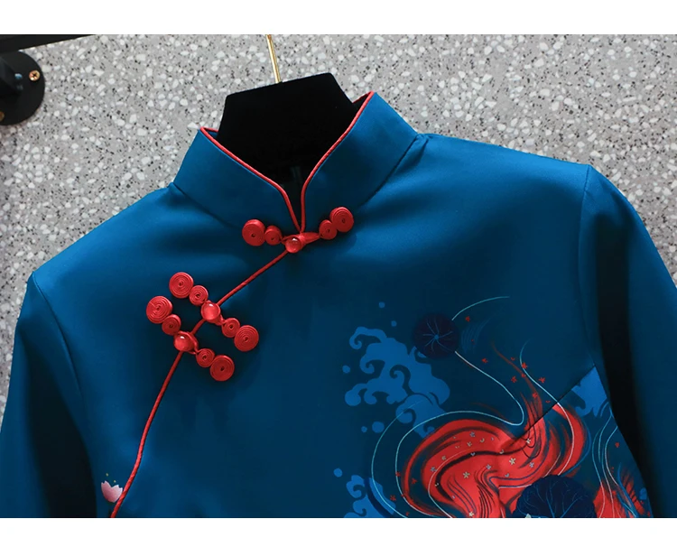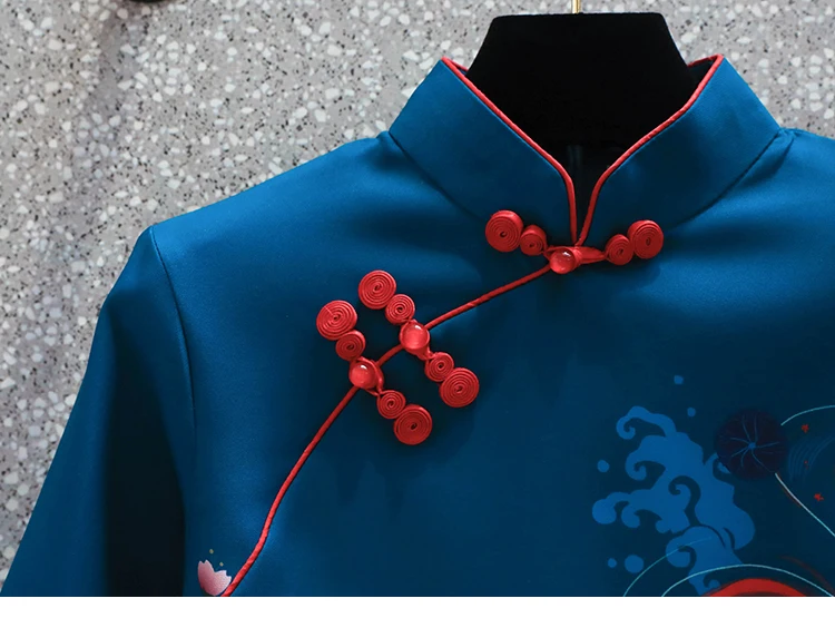 2025 New Year Blue Elegant Party Fashion Modern Cheongsam Dress Women Short Sleeve Qipao Traditional Chinese Clothes